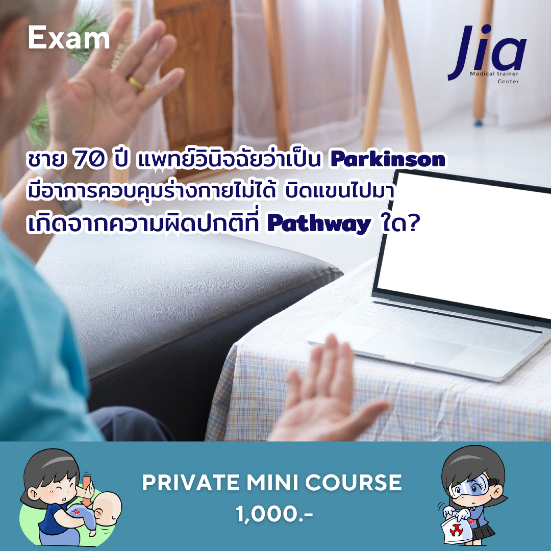 อาการควบคุมร่างกายไม่ได้ บิดแขนไปมา ที่เกิดขึ้นภายหลังได้รับยา L-Dopa เรียกว่า L-Dopa-induced dyskinesia