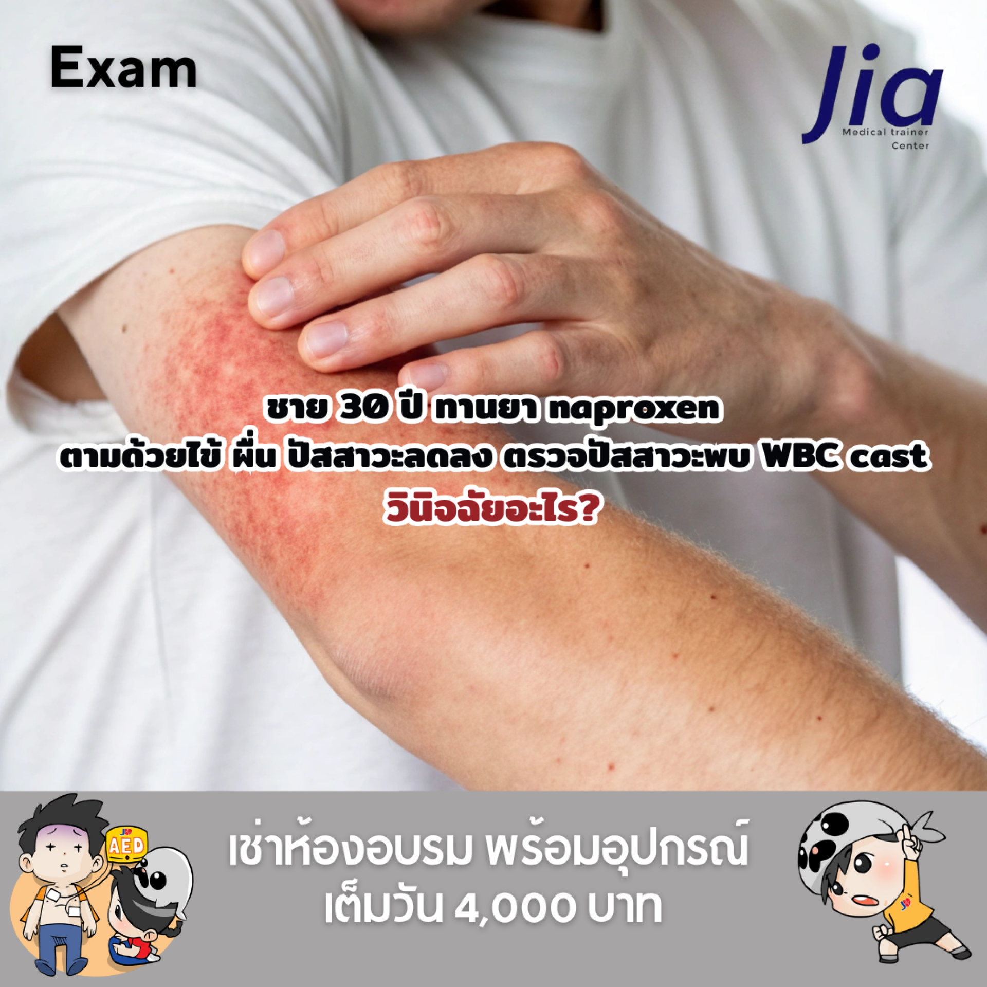 ชาย 30 ปี ทานยา naproxen ตามด้วยไข้ ผื่น ปัสสาวะลดลง ตรวจปัสสาวะพบ WBC cast วินิจฉัยอะไร?