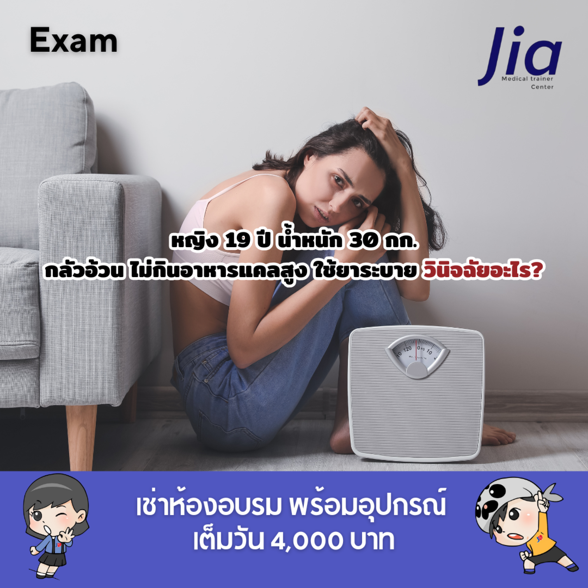 หญิง 19 ปี น้ำหนัก 30 กก. กลัวอ้วน ไม่กินอาหารแคลสูง ใช้ยาระบาย วินิจฉัยอะไร?