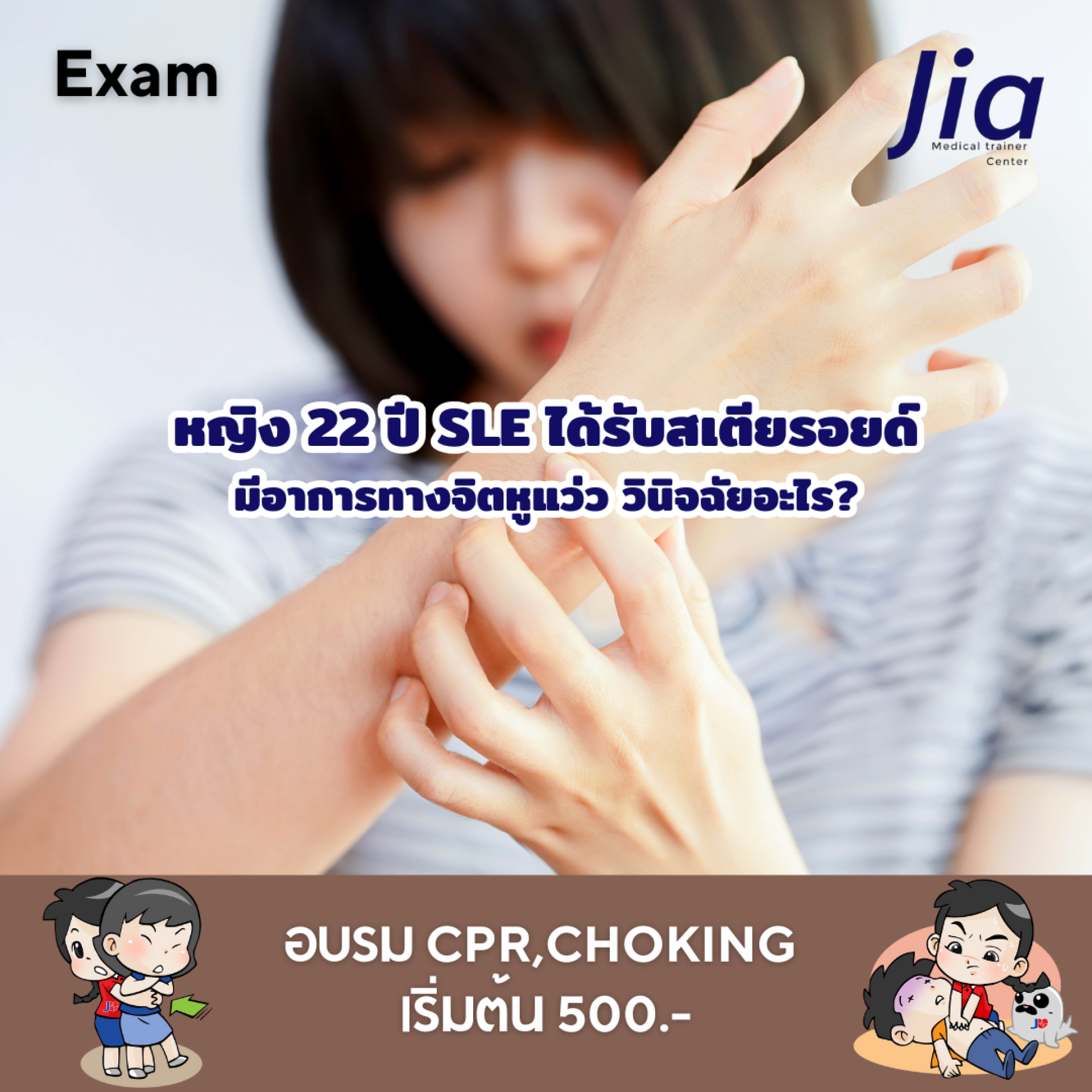 หญิง 22 ปี SLE ได้รับสเตียรอยด์ มีอาการทางจิตหูแว่ว วินิจฉัยอะไร?