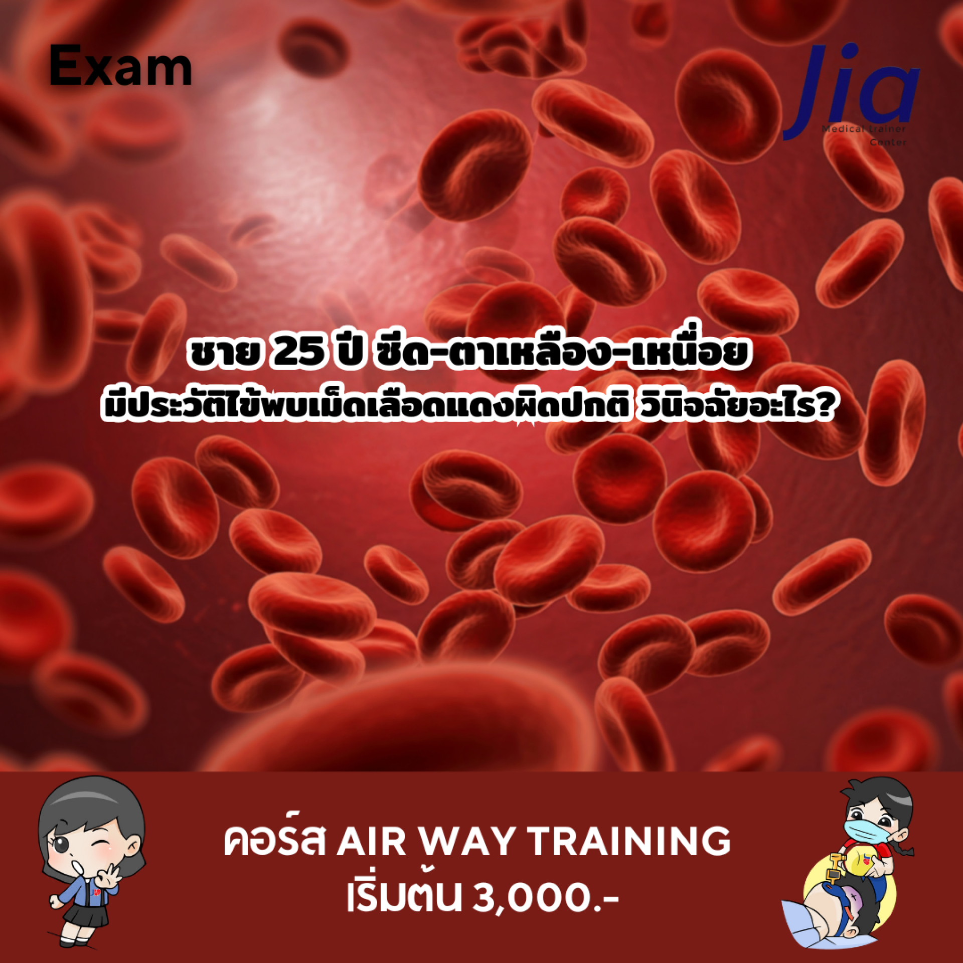 ชาย 25 ปี ซีด-ตาเหลือง-เหนื่อย มีประวัติไข้มาก่อน พบเม็ดเลือดแดงผิดปกติ วินิจฉัยอะไร?