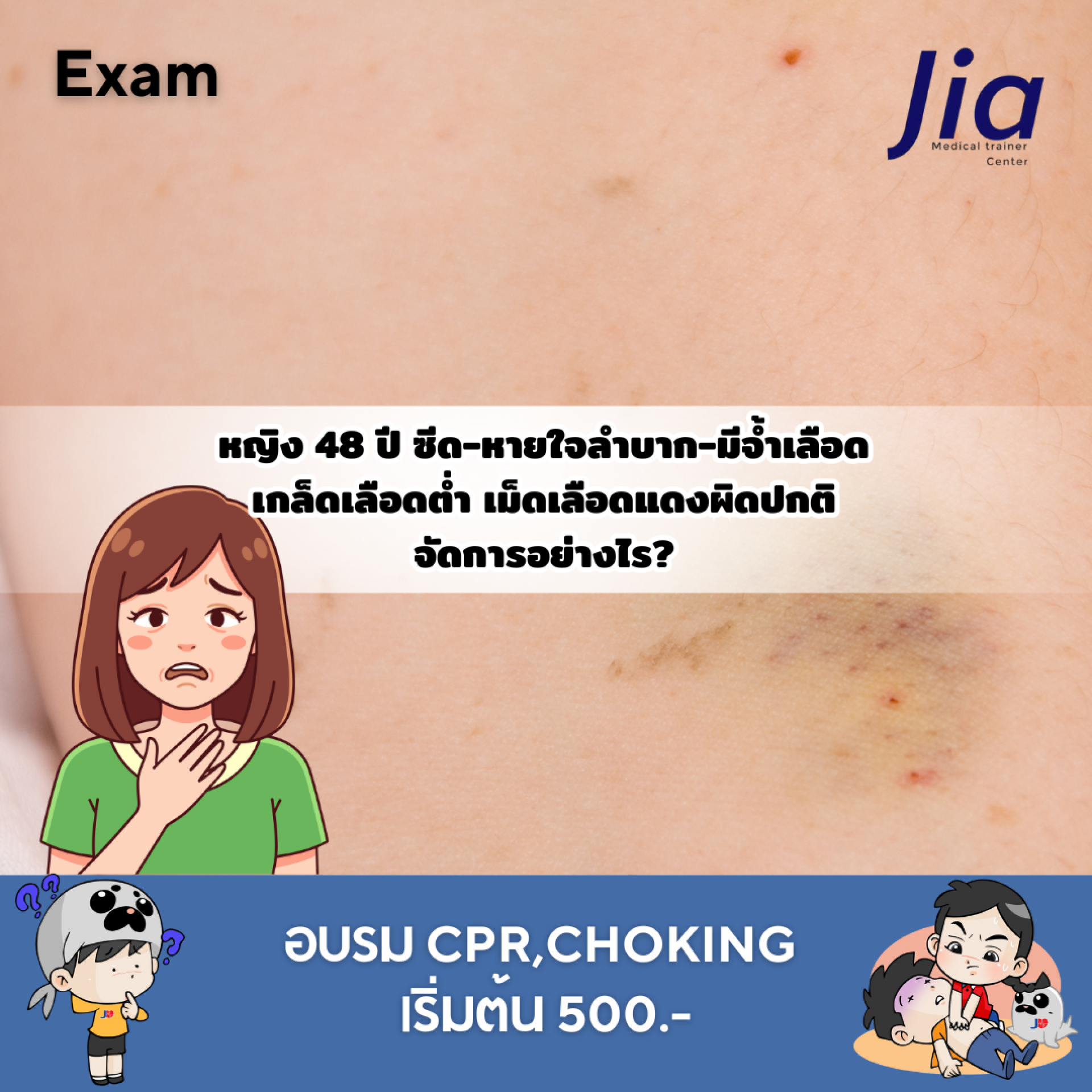 หญิง 48 ปี ซีด-หายใจลำบาก-มีจ้ำเลือด เกล็ดเลือดต่ำ เม็ดเลือดแดงผิดปกติ จัดการอย่างไร?