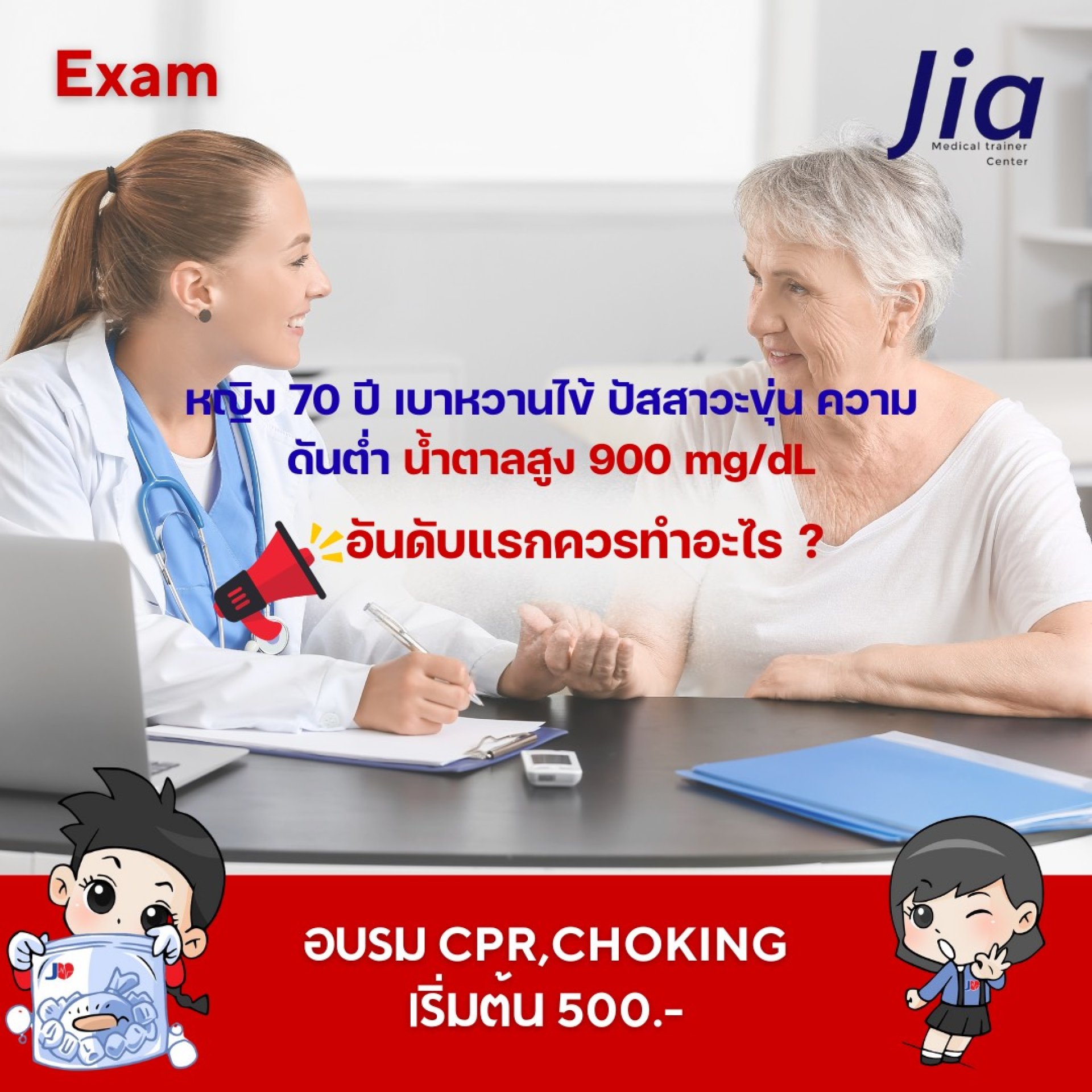 หญิง 70 ปี เป็นเบาหวาน ไข้ ปัสสาวะขุ่น ความดันต่ำ อันดับแรกควรทำอะไร?