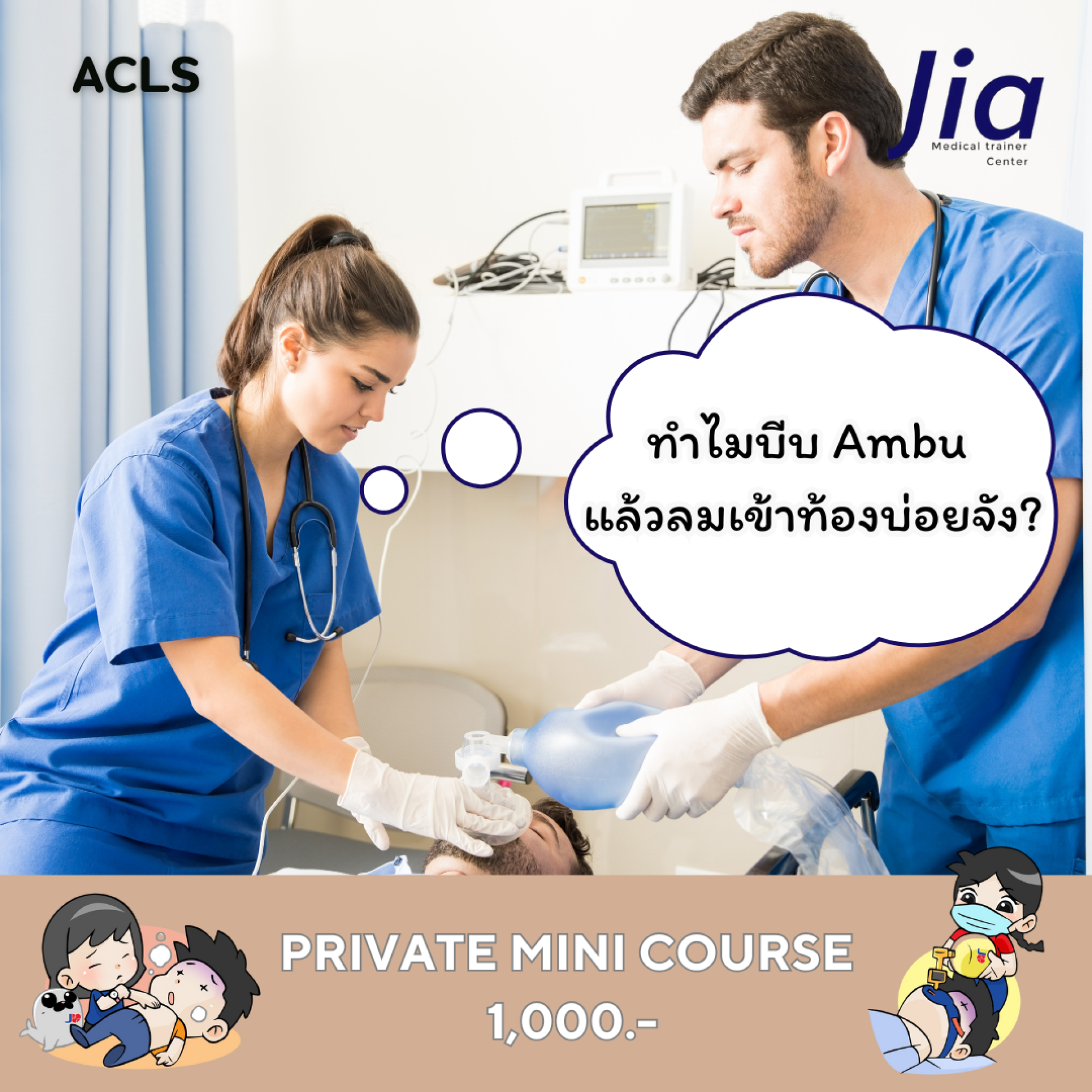 ทำไมบีบ ambu แล้วลมเข้าท้องบ่อยจัง?