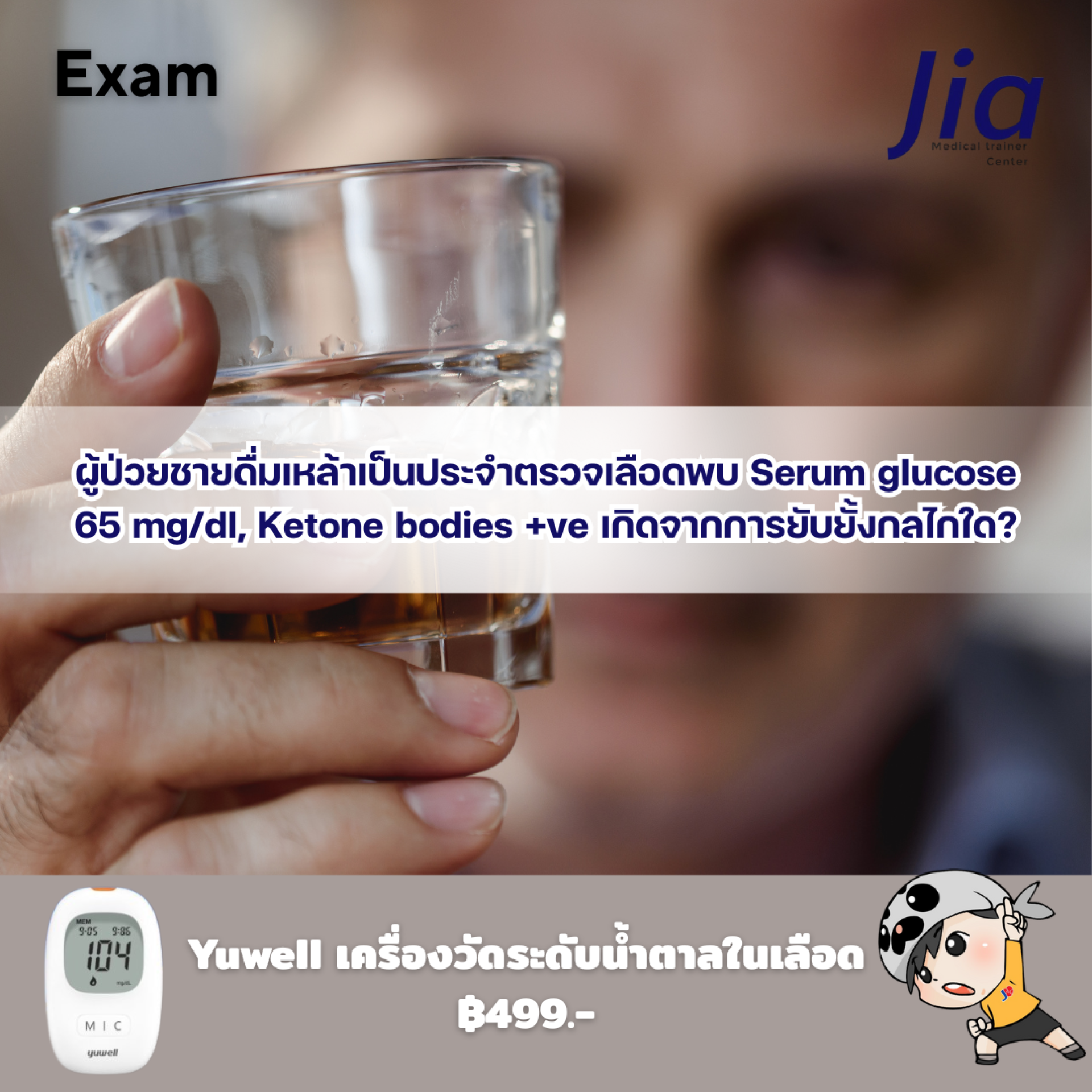 ผู้ป่วยดื่มแอลกอฮอล์ต่อเนื่องและไม่ค่อยกินอาหาร ร่างกายพยายามรักษาระดับน้ำตาลในเลือด