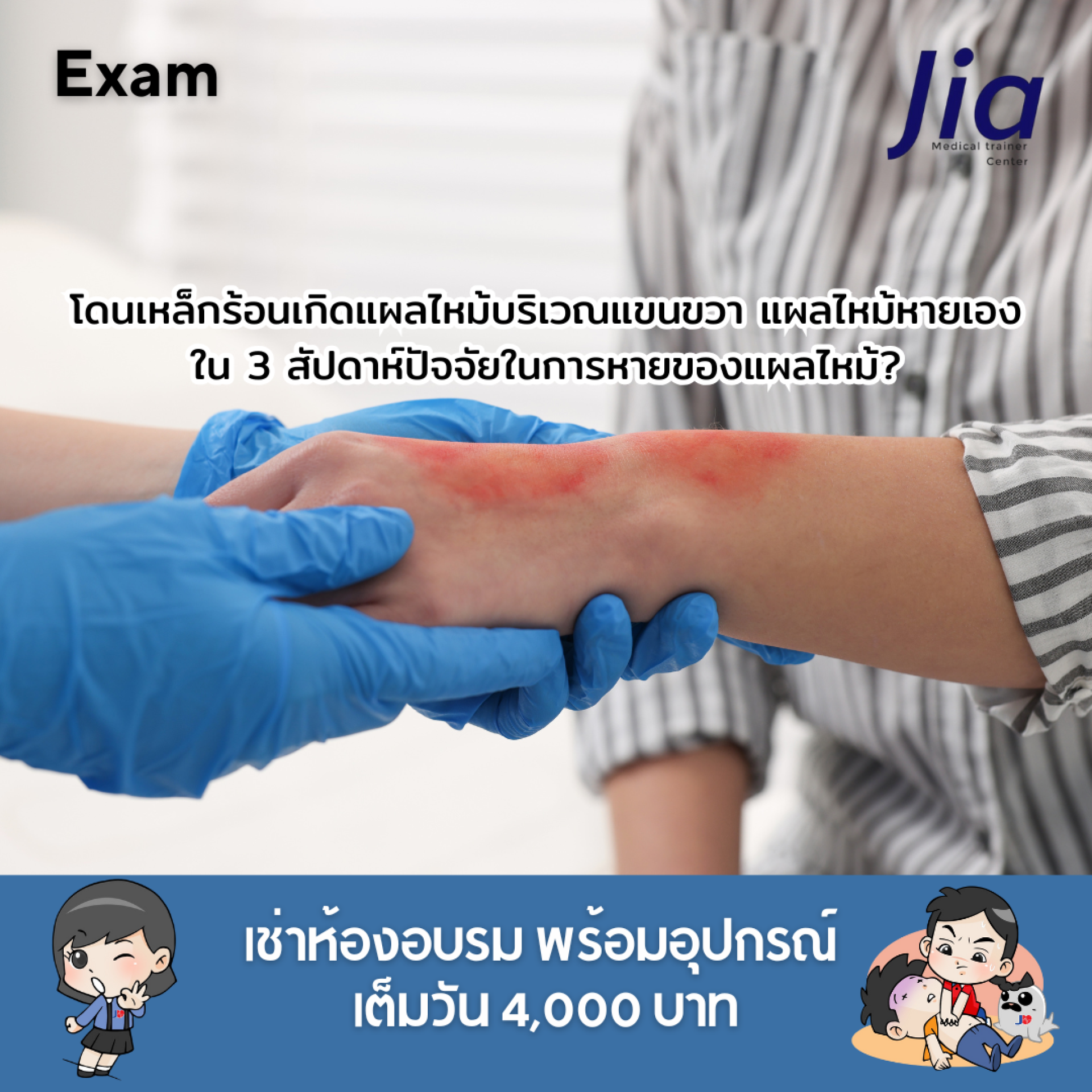 โดนเหล็กร้อนเกิดแผลไหม้บริเวณแขนขวา แผลไหม้หายเองใน 3 สัปดาห์ปัจจัยในการหายของแผลไหม้?