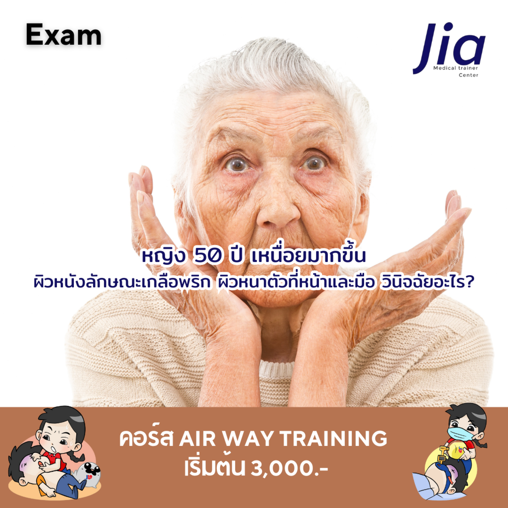 หญิง 50 ปี เหนื่อยมากขึ้น ผิวหนังลักษณะเกลือพริก ผิวหนาตัวที่หน้าและมือ วินิจฉัยอะไร?
