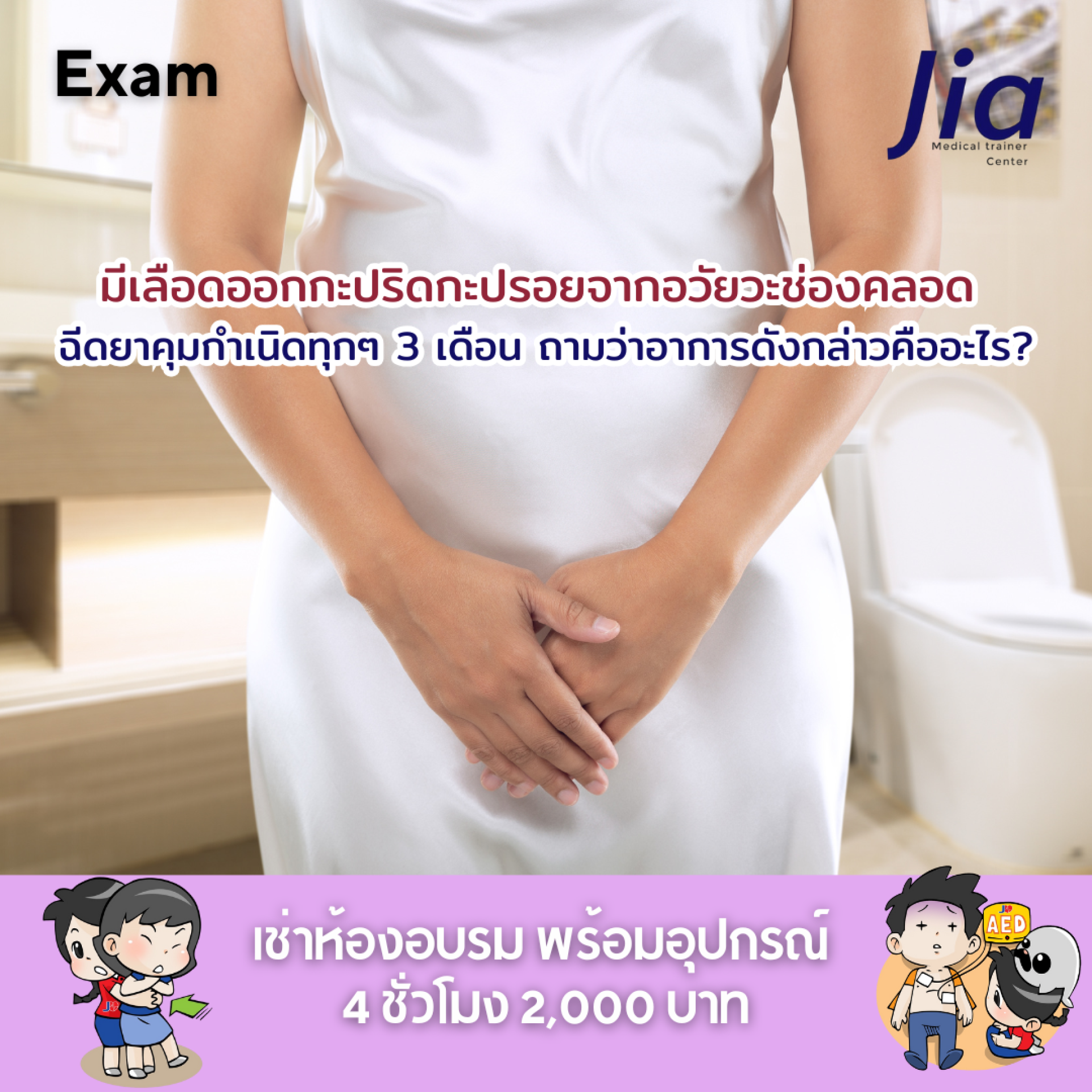 มีเลือดออกกะปริดกะปรอยจากอวัยวะช่องคลอด ฉีดยาคุมกำเนิดทุกๆ 3 เดือน ถามว่าอาการดังกล่าวคืออะไร?